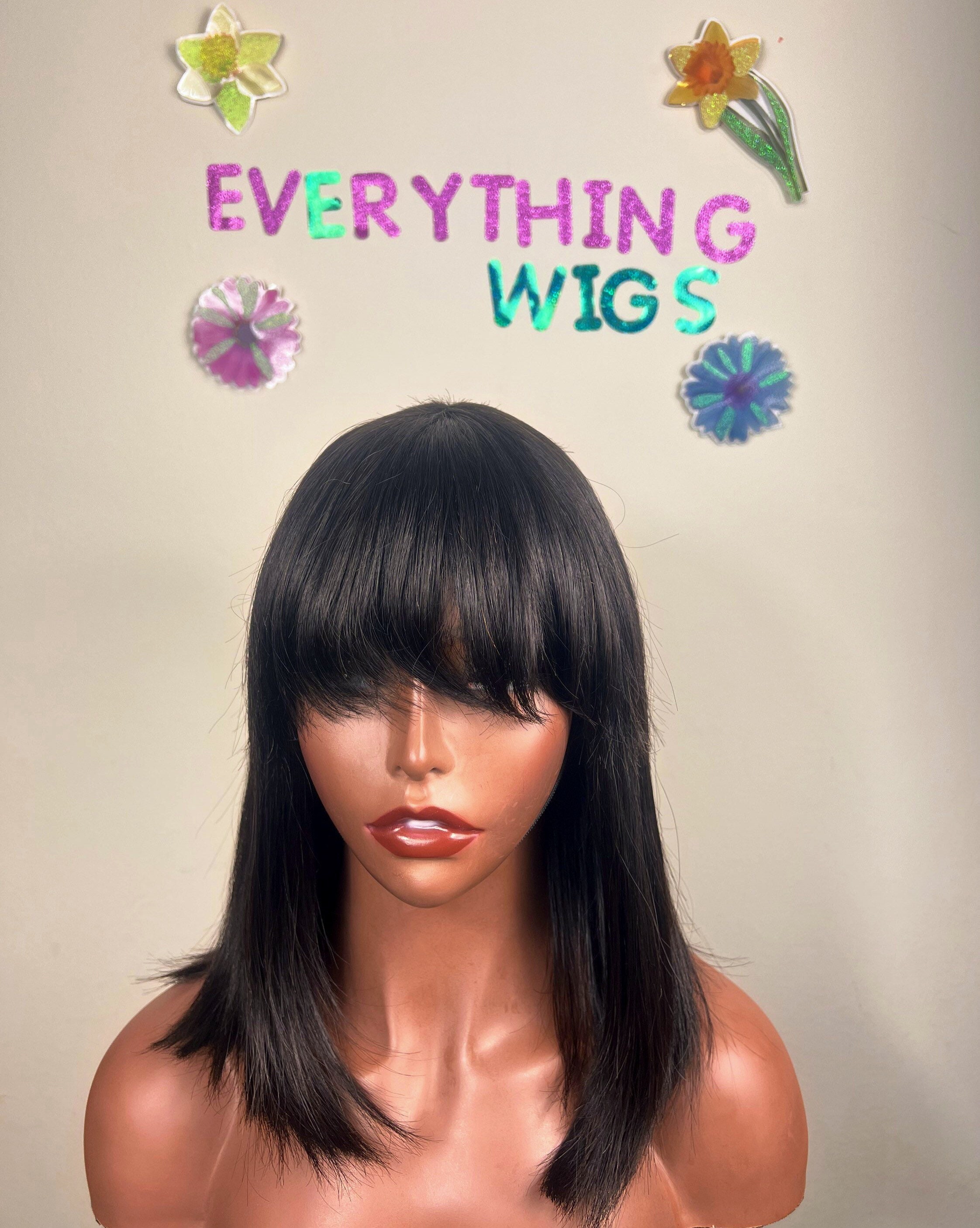 Asian Freshing Short Black Stright Lace Front Human Hair Wig